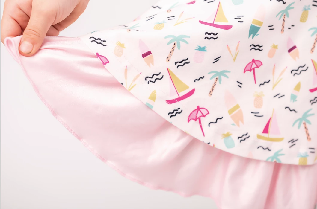 OurΒ gorgeous reversible dresses are coming just in time for all your summer fun! Whether you are planning a beach vacay or a trip to the pool, Beach Bouquet and Tutti Frutti give you FOUR perfect options. Each dress boasts two beautiful designs and weighted fabric to help with maximum twirl.