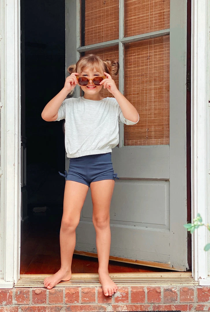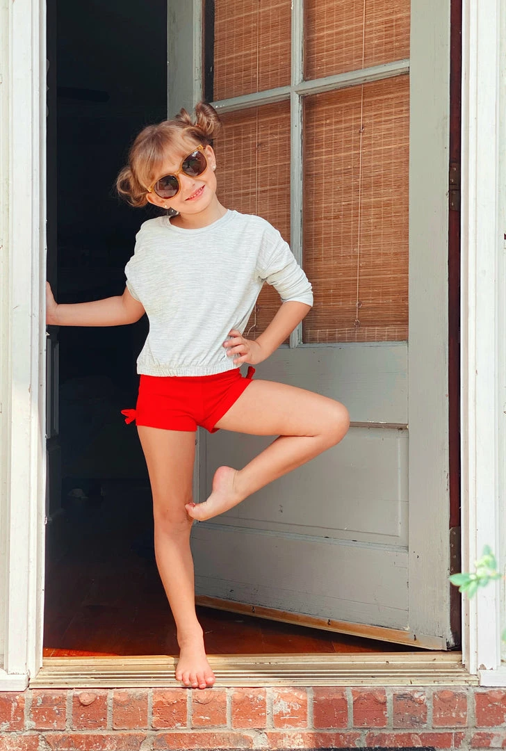 Our super comfy lightweight knit shorts to wear with everything. Wear them under school uniforms or dresses. Pair them with your favorite t-shirts or wear them to bed. Your princess will never want to take these off!!