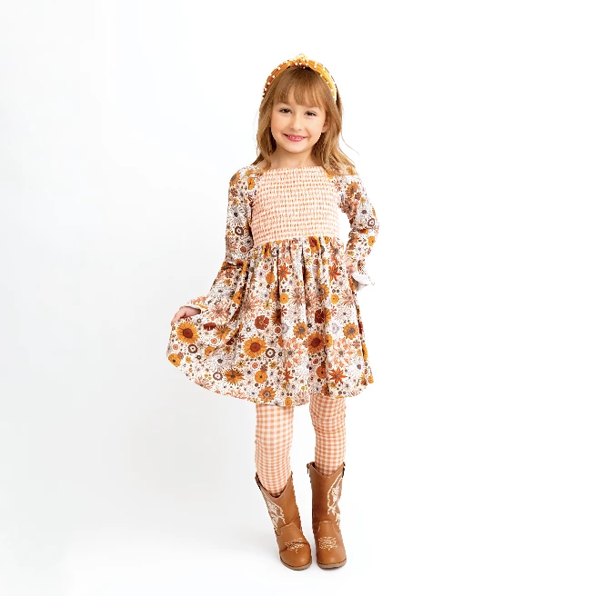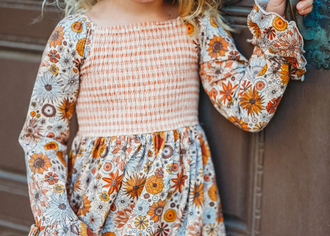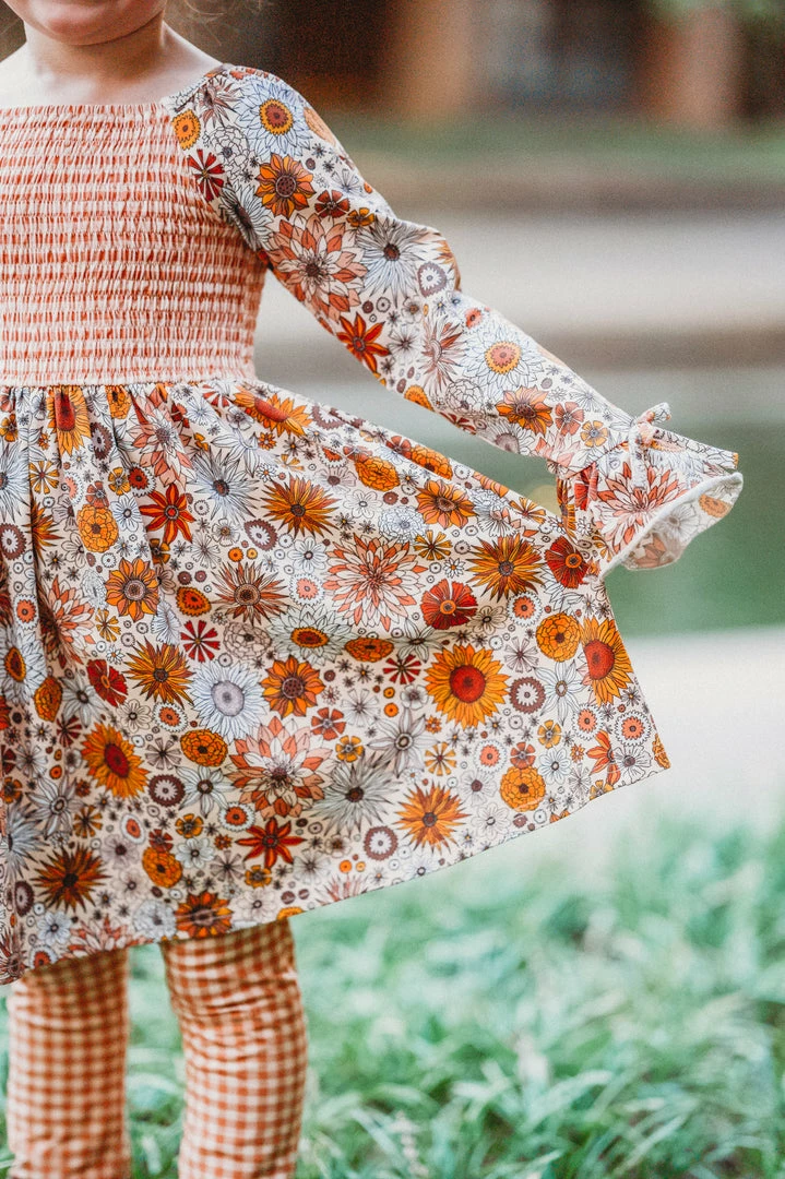 This ππ΄πππΎ πππ½π΅π»πΎππ΄π print is everything! Pair it with the bell sleeves, smocked bodice and leggings for layering and you have the perfect fall outfit!