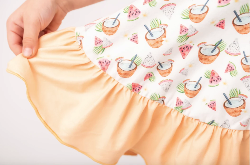 OurΒ gorgeous reversible dresses are coming just in time for all your summer fun! Whether you are planning a beach vacay or a trip to the pool, Beach Bouquet and Tutti Frutti give you FOUR perfect options. Each dress boasts two beautiful designs and weighted fabric to help with maximum twirl.