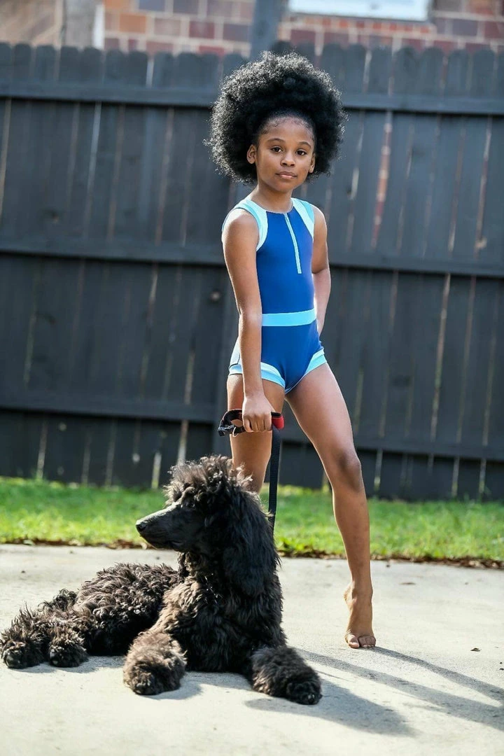 The sporty style is back in a new color way! All leos are double lined and color-blocked, taking you straight from the studio to the pool deck!